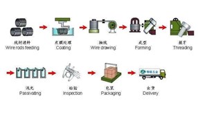 不銹鋼螺絲生產(chǎn)廠家制作螺絲的工藝:不銹鋼螺絲盤元——不銹鋼退火——不銹鋼酸洗——不銹鋼螺絲抽線——不銹鋼螺絲成型——不銹鋼螺絲輾牙(攻牙)