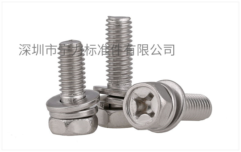 生活中我們有時會用到組合螺絲,但你們對組合螺絲有了解嗎?可能現(xiàn)在的人都很少去了解組合螺絲了吧。如果你不想了解可以看看這篇新聞。組合螺絲組合螺絲是指一個螺絲配一個彈墊在配一個平墊通過搓牙,組合緊固在一起的組合件。而二組合螺絲是指一個螺絲只配一個彈墊或只配一個平墊,要嗎還可以只配一個花齒的二組合件。組合螺絲國標號用GB9074表示。常用的十字槽小盤頭三組合螺絲國標號是GB9074.8。這個.8的是指小盤頭的。也就是常說的盤頭螺絲的頭部大小。用字母表示為PM。行業(yè)組合螺絲廠家,習慣性的表示方法是三合PM。而常用的十字槽大盤頭組合螺絲國標號是GB9074.4。行業(yè)叫大盤頭的組合螺絲?;騌頭的,或B頭的。也就是說這組合螺絲的頭部比小盤頭組合螺絲的頭部要大,要厚點。還有常用的一種是外六角組合螺絲,這種是十字外六角組合螺絲。常稱凹穴外六角組合螺絲。國標號為GB9074.13。